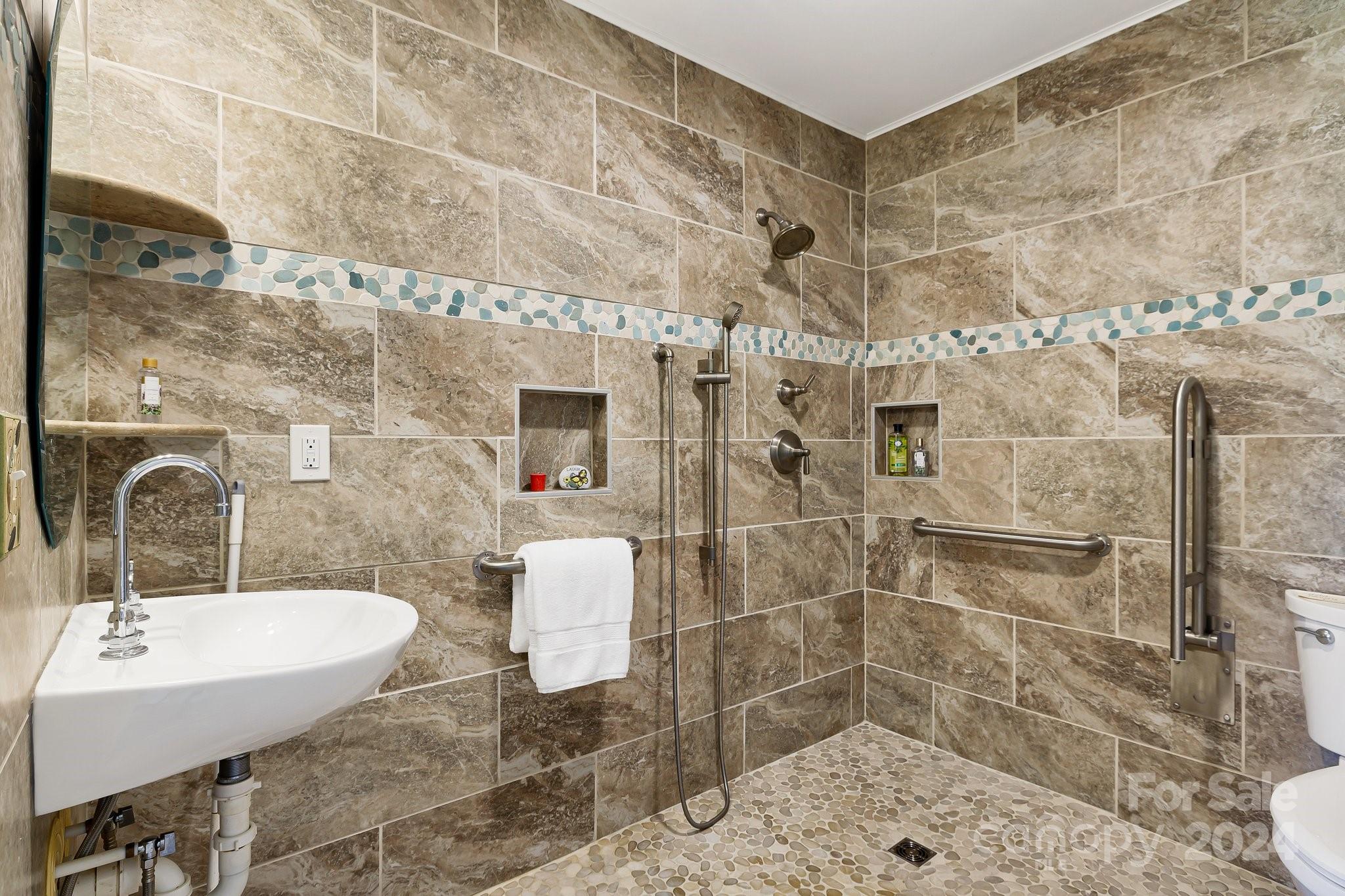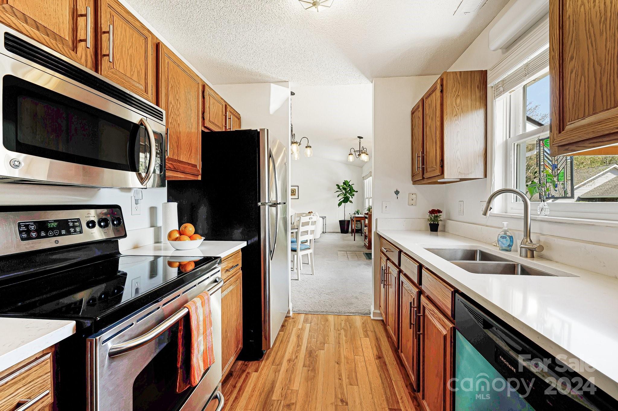 Seize the opportunity for a Move-In Ready Home, with One Level Living and Low Maintenance! Located in coveted The Hills of Avery Creek, a quiet 55+ community, this home has been Recently Renovated, with a spectacular Primary Bath! From cathedral ceiling & plenty of light, and an attached garage with easy kitchen access, and the Addition of an easy access door from garage and laundry to the bedroom suite, this home is outstanding! Smaller square footage = less to clean! Two generously sized bedrooms await, both with walk-in closets! Call to see this one Today!