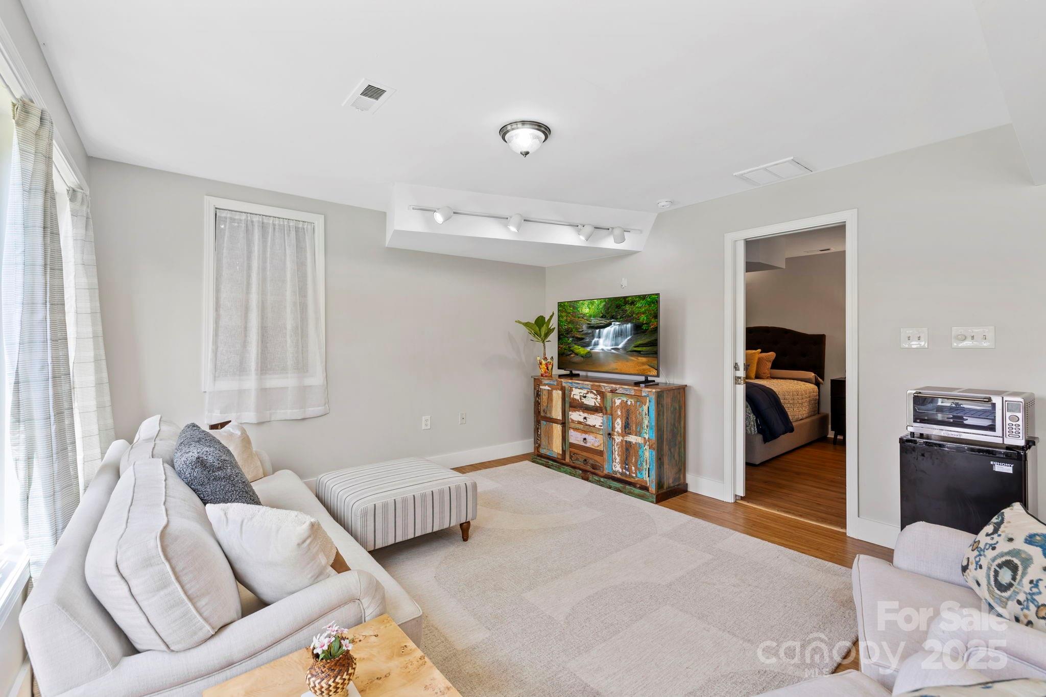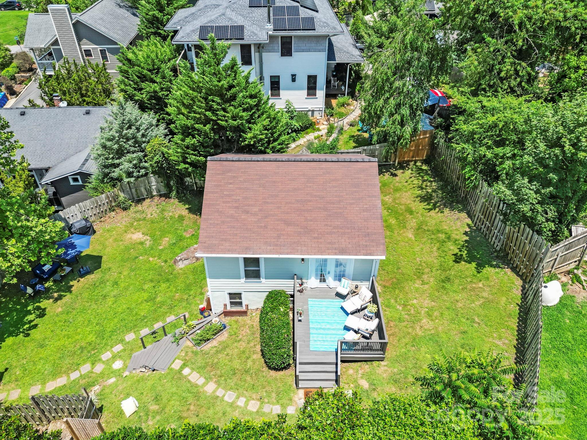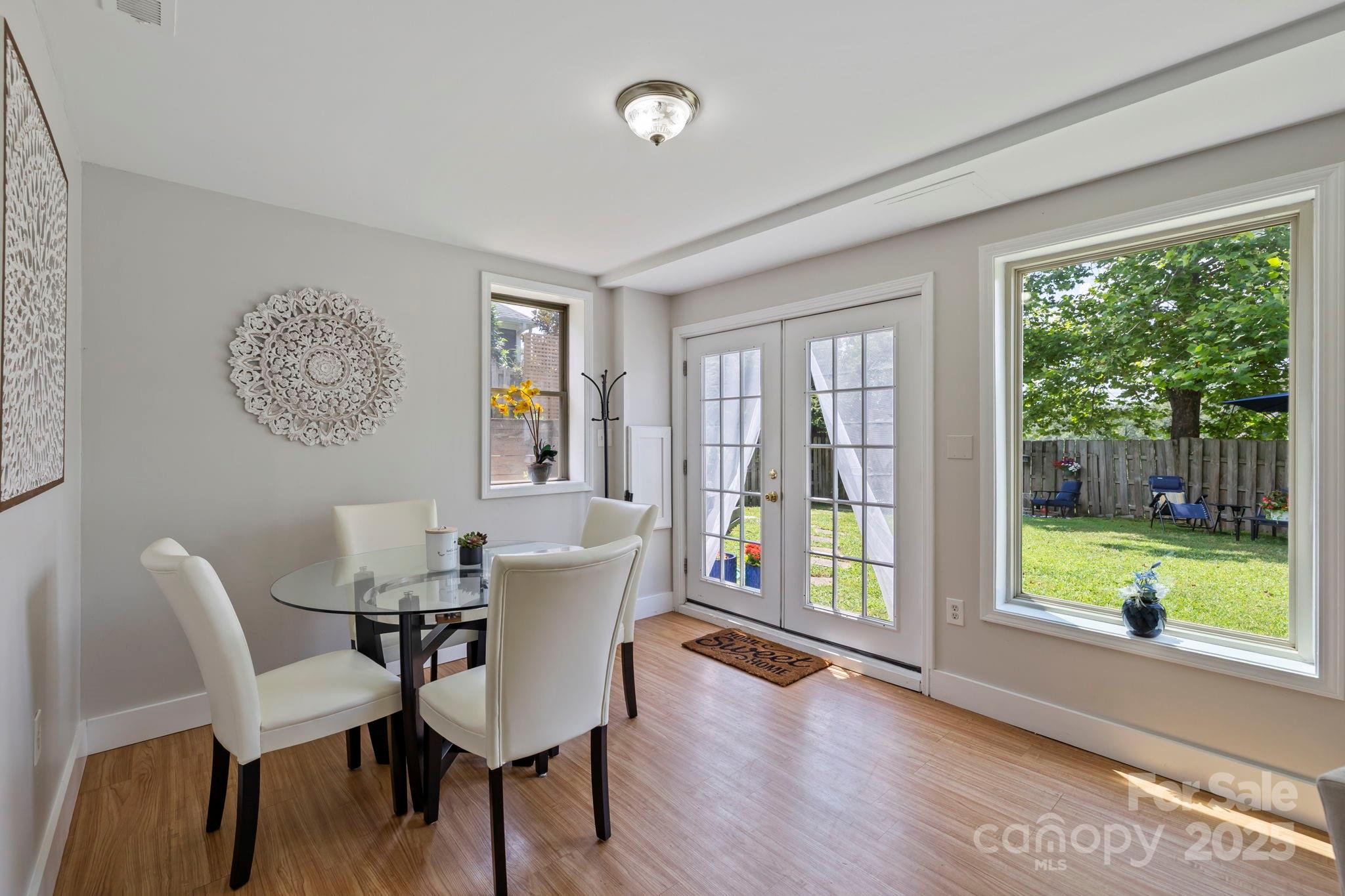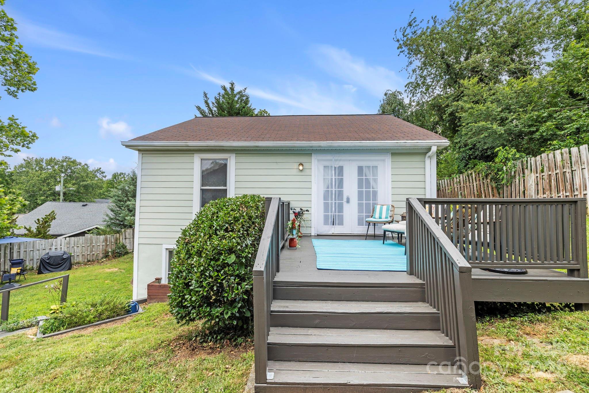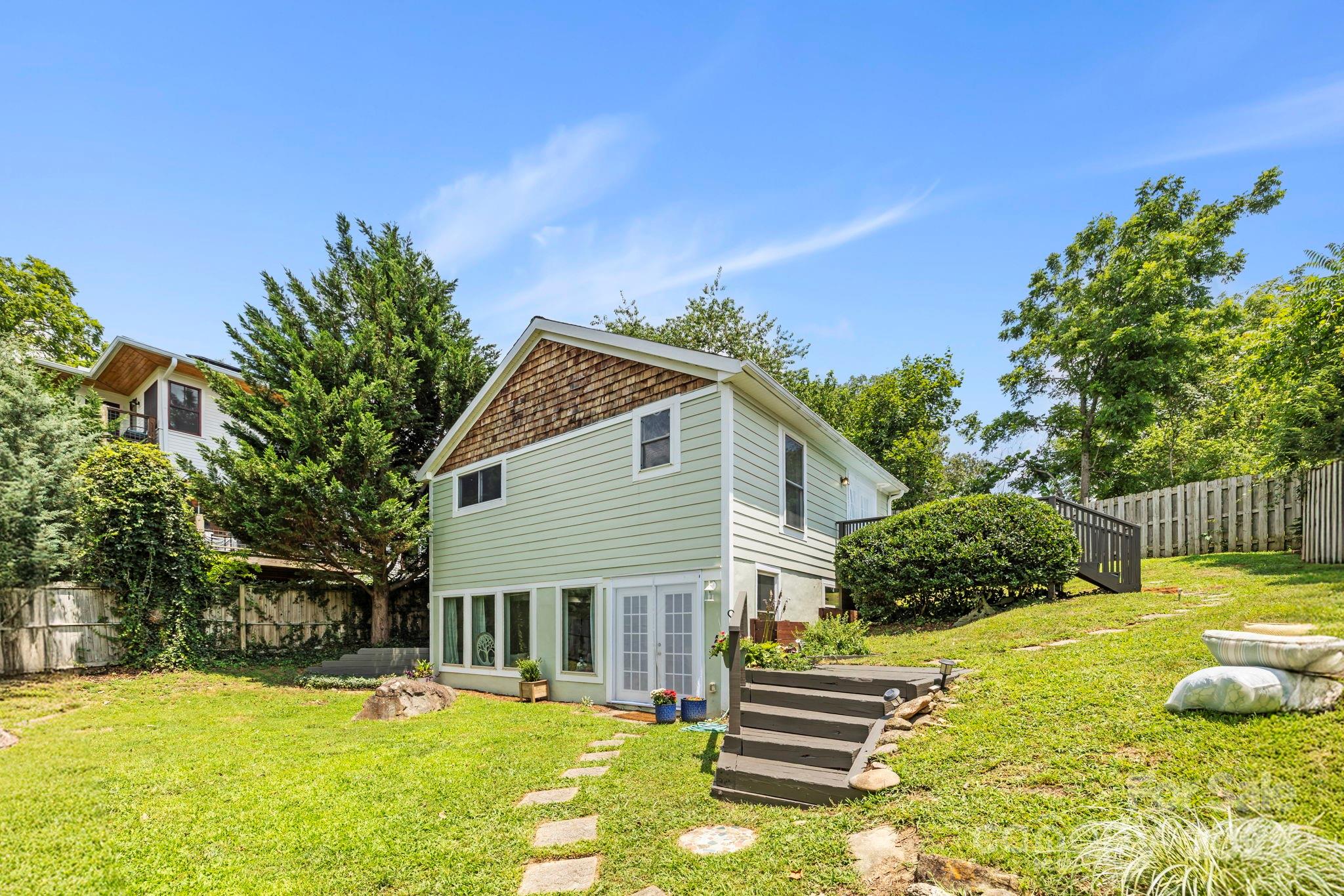 Charming Montford Gem! Set on an oversized lot with long-range mountain views, this private, light-filled home is conveniently located. Ideal for a small family, couple, or investor—live upstairs & rent downstairs, or enjoy it as a classic Montford retreat. Upstairs, enjoy a full living area w/ two bedrooms or use one as an office! Large deck to enjoy sunrise & sunset. Fully finished lower level features include a beautifully finished walkout with open space living area and bedroom, full bath, and French doors to the garden.