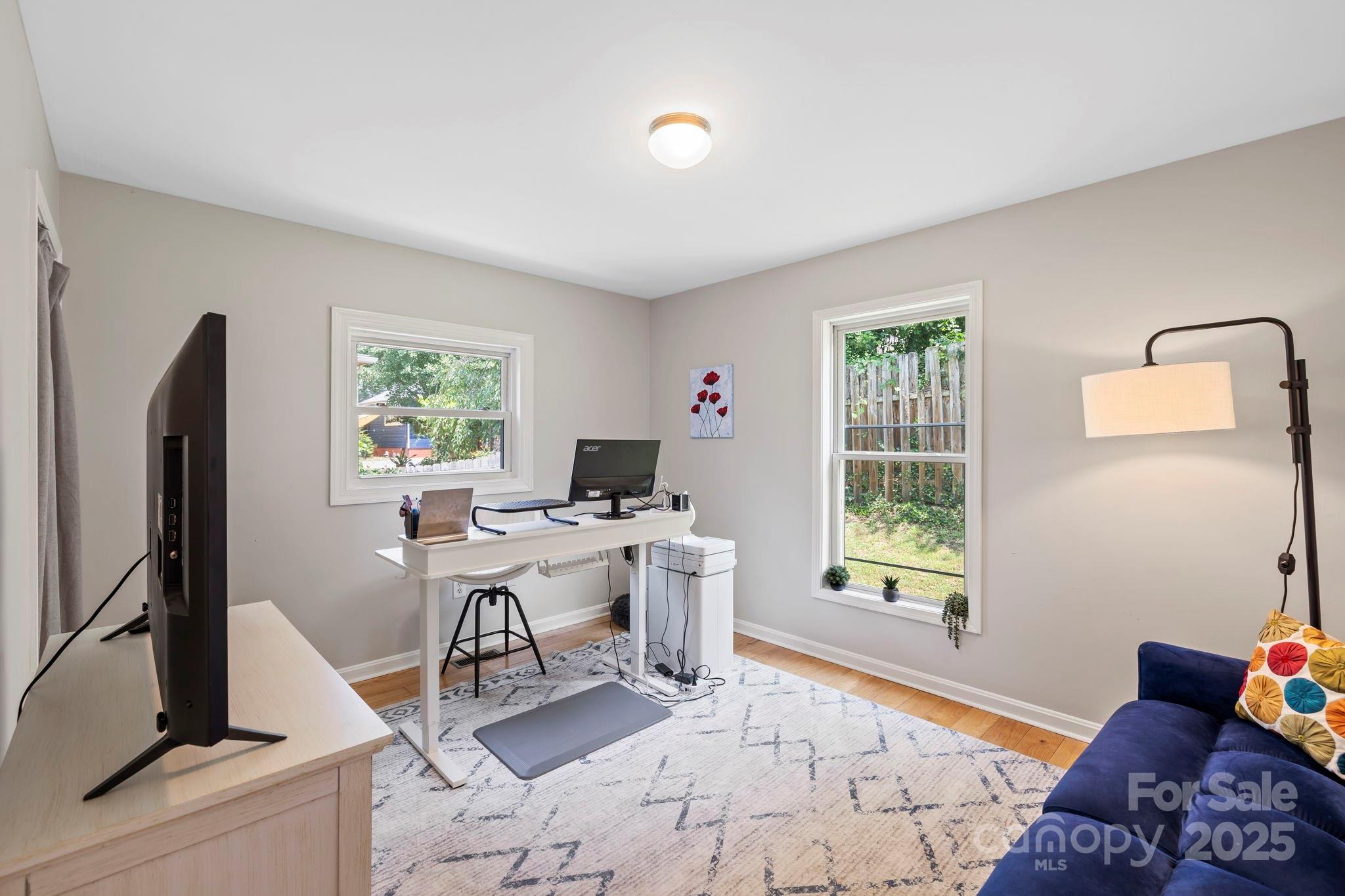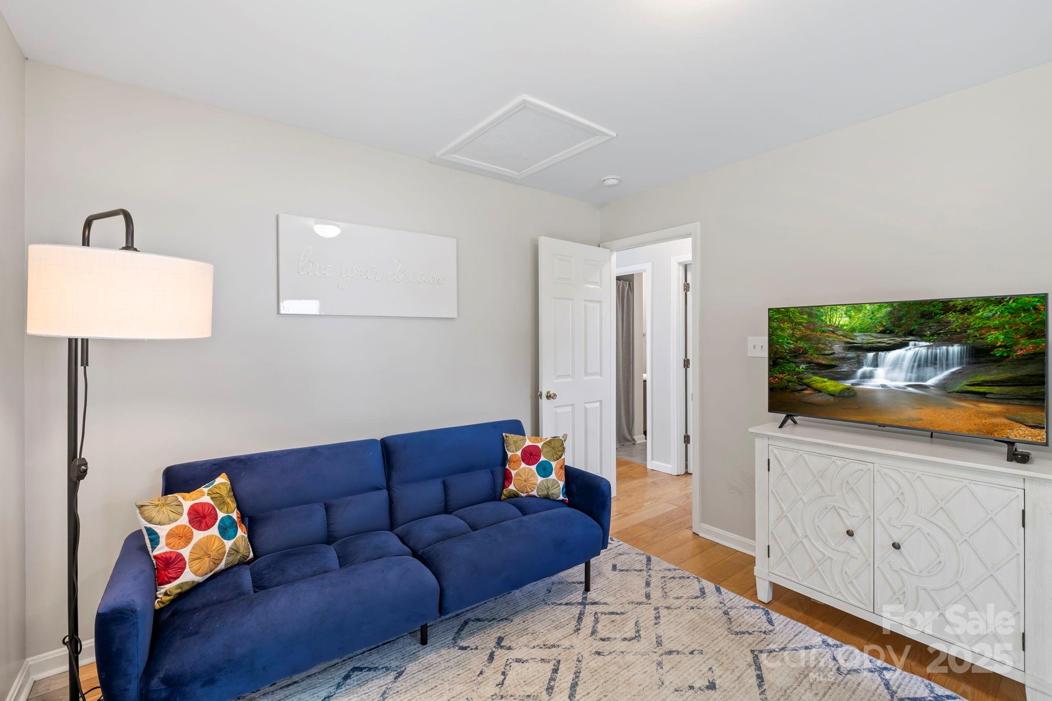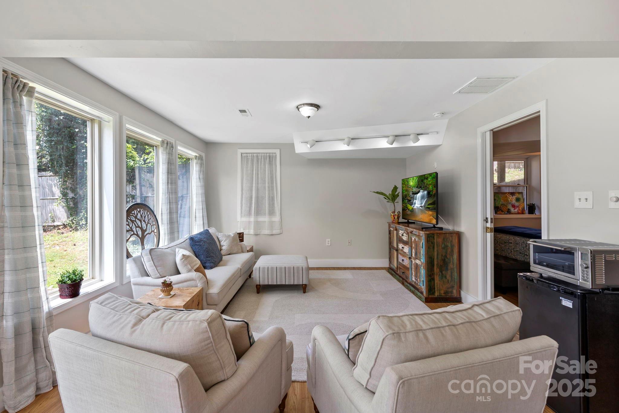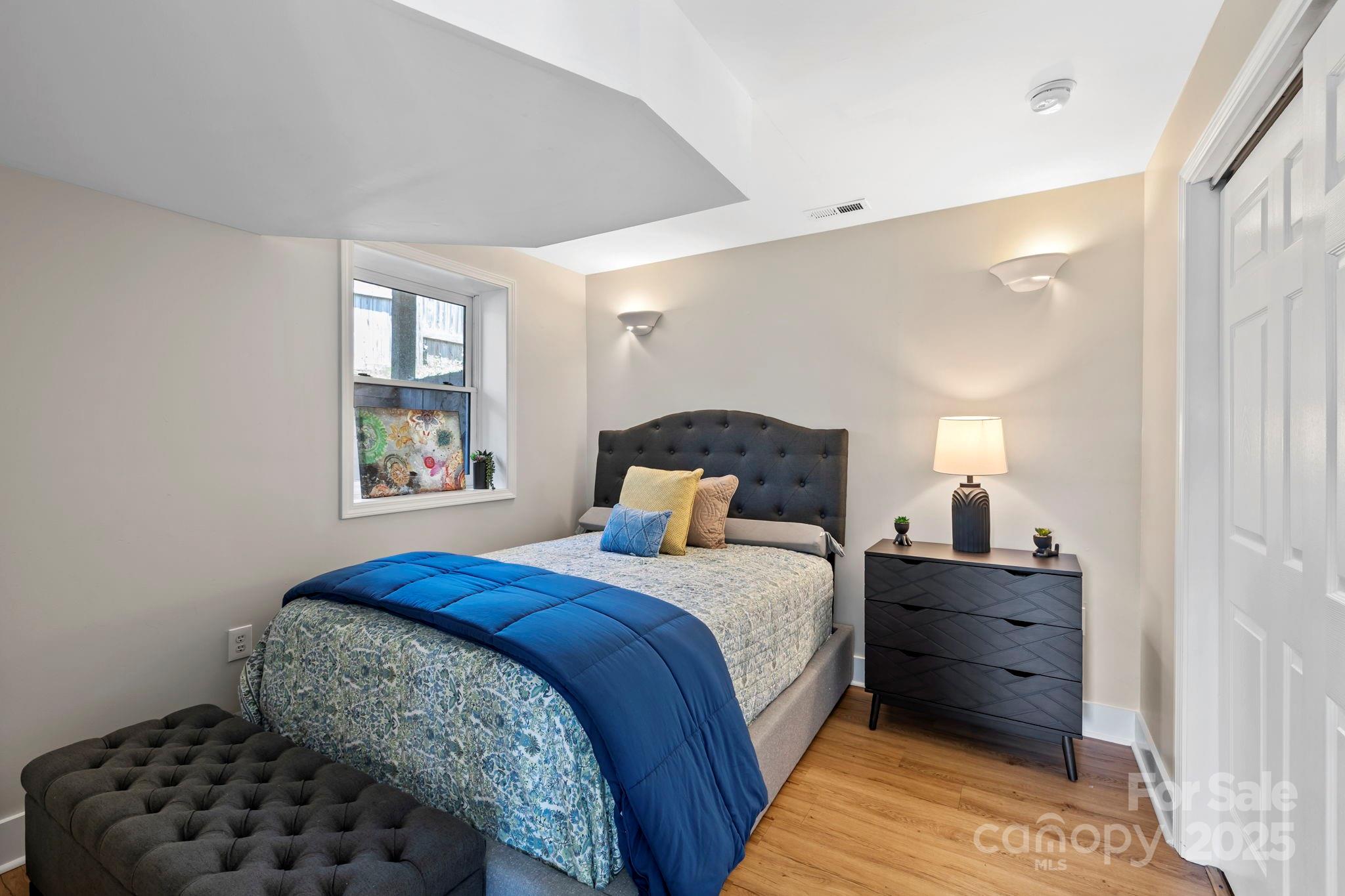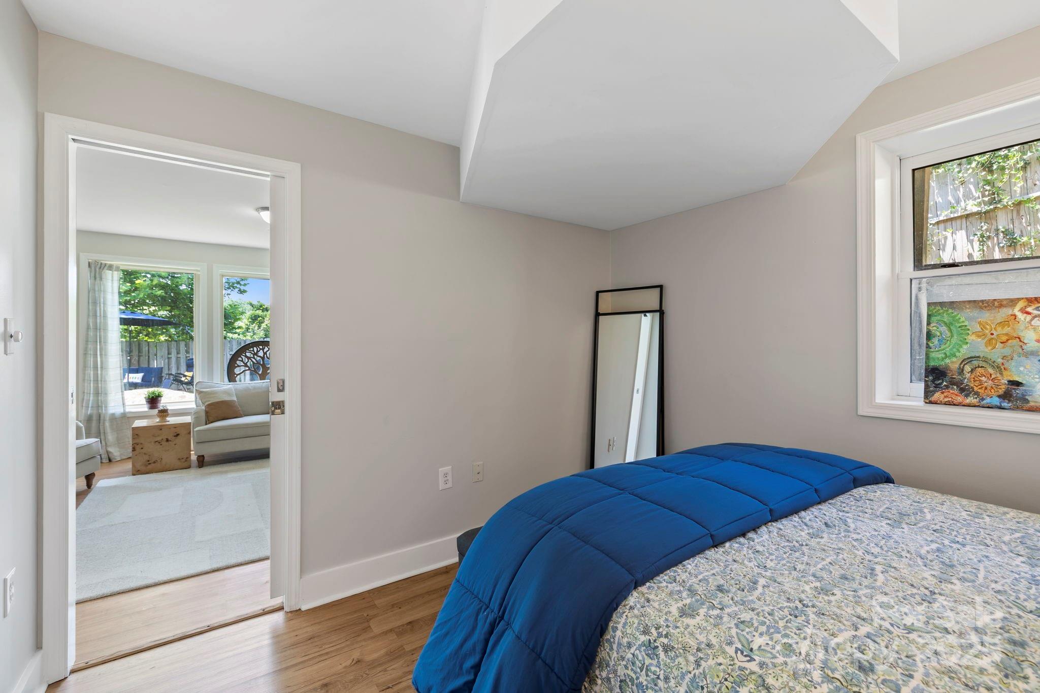 Charming Montford Gem! Set on an oversized lot with long-range mountain views, this private, light-filled home is conveniently located. Ideal for a small family, couple, or investor—live upstairs & rent downstairs, or enjoy it as a classic Montford retreat. Upstairs, enjoy a full living area w/ two bedrooms or use one as an office! Large deck to enjoy sunrise & sunset. Fully finished lower level features include a beautifully finished walkout with open space living area and bedroom, full bath, and French doors to the garden.